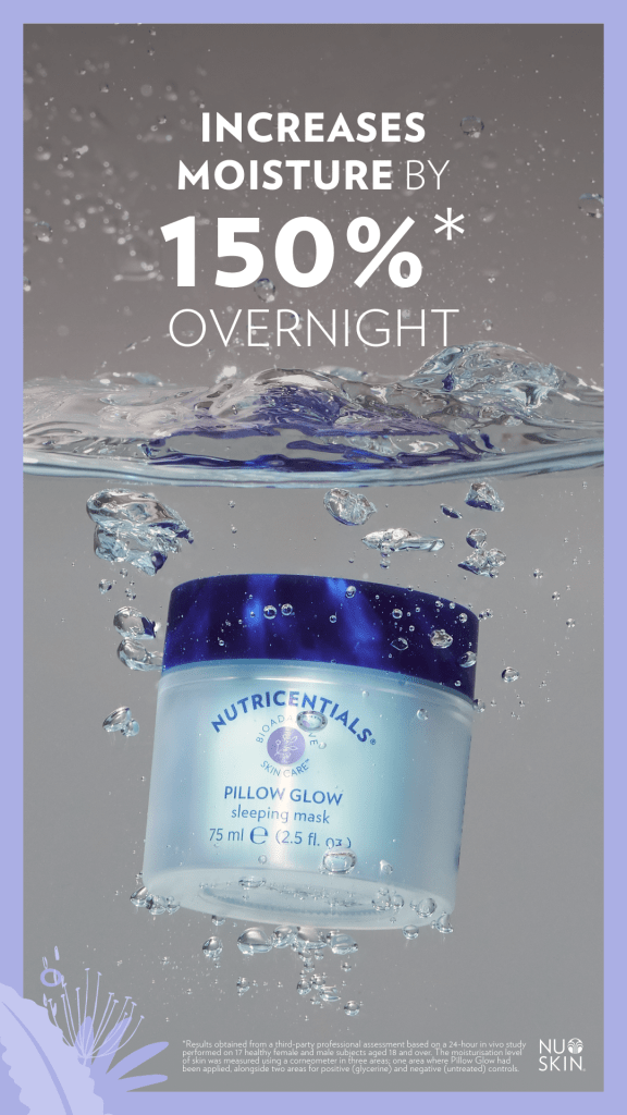 Ik was op zoek naar een oplossing en kwam het Pillow Glow Sleeping Masker van Nu Skin tegen. Dit masker breng je ’s avonds aan, en terwijl jij slaapt, doet het zijn werk. In de ochtend was je het af en voilà: je huid is tot wel 150% meer gehydrateerd. Dat wilde ik natuurlijk zelf proberen.