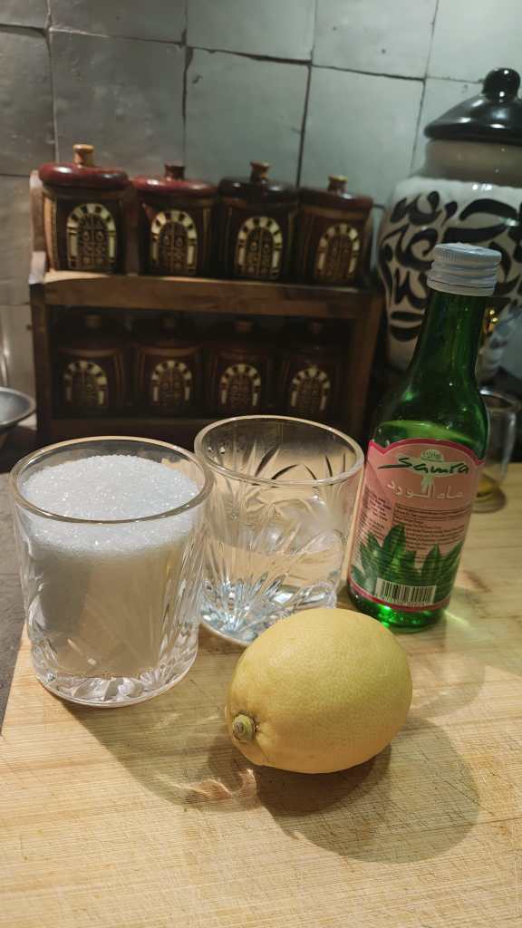 - Doe de suiker, het water, citroensap en het oranjebloesemwater samen in een steelpannetje en zet op het vuur.